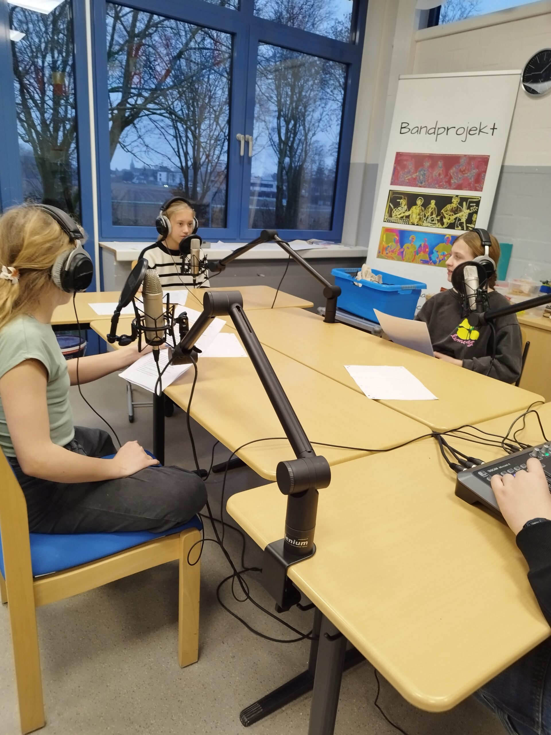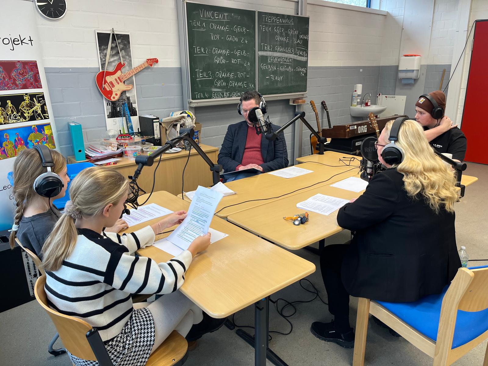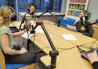 Unterstützt durch die SoWi-Lehrkräfte (Herr Beyer, Frau Müller, Herr Tsang und Herr Schulze) arbeiteten die Schülerinnen und Schüler dabei weitgehend selbstständig – von der Themenfindung über Interviews bis hin zur Produktion der Podcasts.
