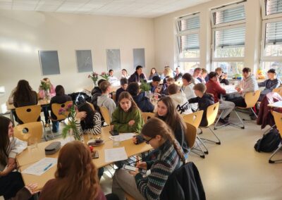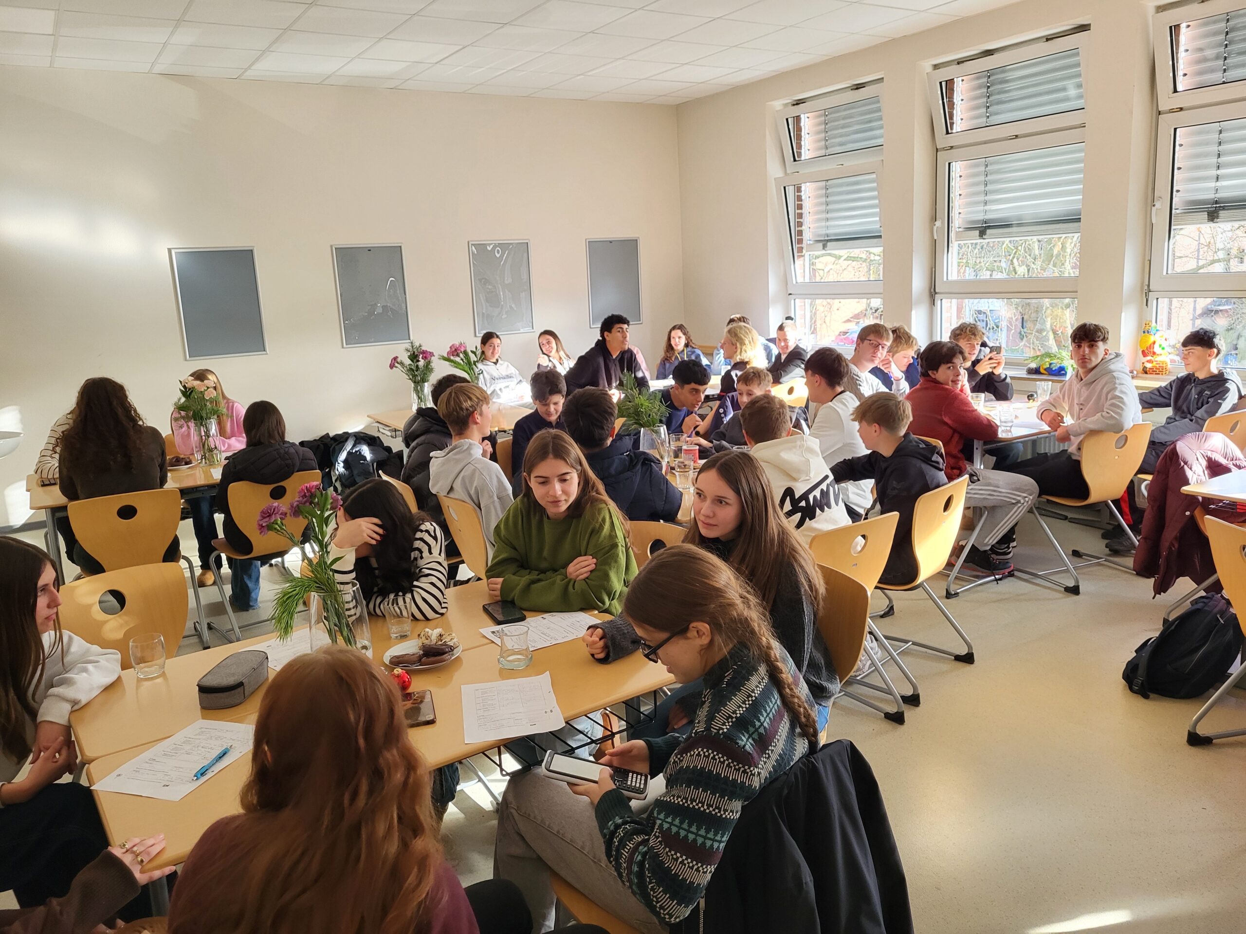 Gemeinsam mit ihren jungen Gastgeberinnen und Gastgebern unserer Schule starteten die